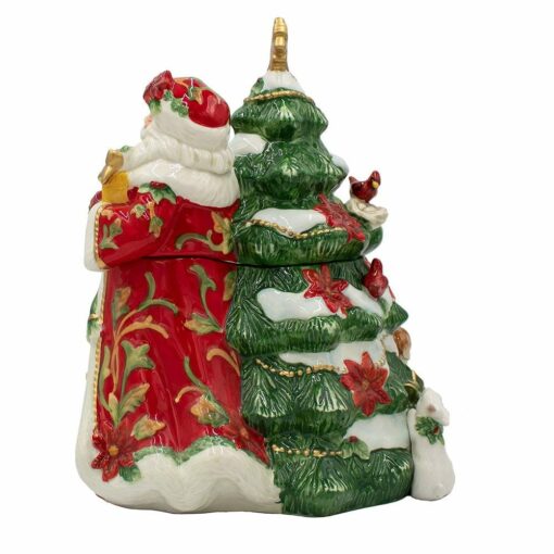 Nostalgic in composition, the refined rustic esthetic of birch branches mingles effortlessly with classic motifs and gold accents. Our Cardinal Christmas Cookie Jar garners our favorite holiday characters of Santa and Winter Cardinals abundantly featured. With the red poinsettia blooms accented by festive greenery, there is just so much beauty this collection offers. Enjoy a handful of Christmas cookies from this hand painted Cookie Jar.