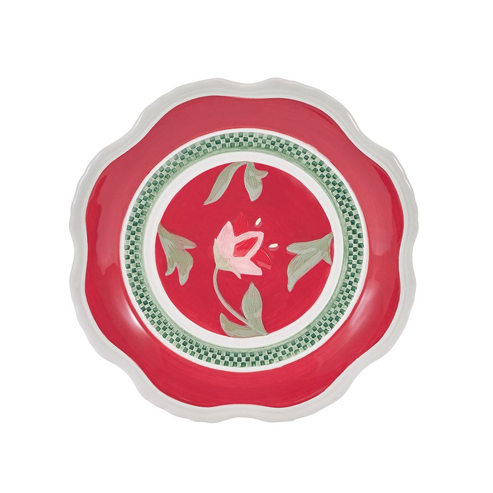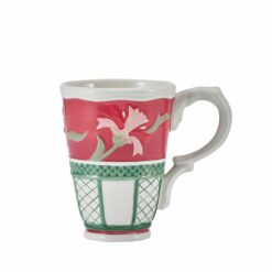 This Chalet Dinnerware Set is beautifully hand-painted with attention to detail, adorned with an abstract floral pattern in a vivid palette of pink, red, green, maroon, and white, and will add a festive, celebratory feel to any occasion. • Dinnerware Set for 4: This 16 piece dinnerware set includes (4) each of: 10-3/4 inch dinner plate, 8-1/2 inch salad plate, 5 inch diameter (24 ounce) soup cereal bowl, and 14 ounce mug • Crafted of Earthenware • Handwashing Recommended • Packaged in a brown box
