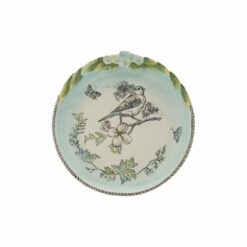 This English Garden Set of 4 Bird Salad Plates feature artwork of a song bird perched on a branch, with floral accents in blush tones of pink gracefully balanced against a sky of serenity blue, and echoes the renewal of spring and old world romance. • Crafted of Stoneware • Microwave and Dishwasher safe • Measures 9 inch diameter x 1-1/4 inch high • Packaged in a brown box