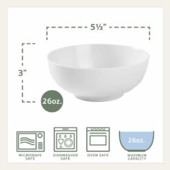This Everyday White Beaded Dinnerware Set features a subtle, raised bead pattern border, and is perfect for both casual or formal dining. Beautifully crafted of porcelain. 16 piece dinnerware set, service for four, includes (4) each: 10-5/8 inch dinner plate, 8-1/2 inch salad plate, 5-1/2 inch diameter x 3 inch high (26 fluid-ounce) bowl and 14 ounce mug. Microwave, dishwasher and oven safe up to 450 degrees.