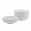 This Everyday White Deep Serving Bowls, Set of 2 will add understated style to any dining occasion. Perfect for everyday use or formal entertaining. Beautifully crafted of porcelain. Set of 2 includes (1) each: Vegetable Bowl measuring 7-1/4 inch diameter x 3-3/4 inch high, holds 1-1/2 quarts and an Extra Large Serve Bowl measuring 10-3/4 inch diameter x 5-5/8 inch high, holds 5-1/2 quarts. Microwave, dishwasher and oven safe up to 450 degrees.