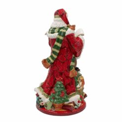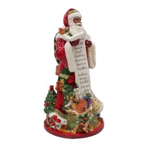 This Fitz and Floyd Holiday Home African American Santa Figurine features Santa Claus all ready to deliver his bag of toys, yet taking a moment to check his list twice! Sized to impress, it will be the highlight of your home, whether used as a centerpiece on a table or displayed on a fireplace mantel. • Crafted of beautifully hand-painted Earthenware • Dust gently with a soft cloth • Measures 11 inch width x 18-3/4 inch high • Packaged in a brown box