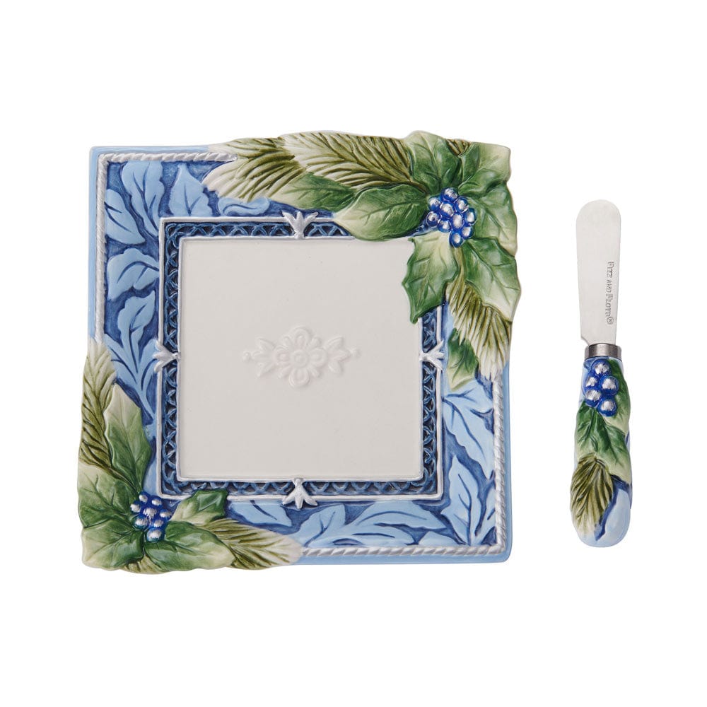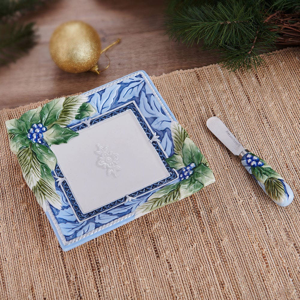 Holiday Home Blue Appetizer Plate with Spreader Set