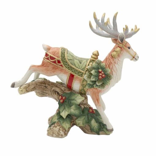 This Holiday Home Landing Deer Candleholder is adorned in a color palette of Winter Green, stunningly detailed with holly leaves, pine needles and decorative gold detailing. Place a candle in the opening in the deer’s saddle to add the warmth of candlelight to all your seasonal celebrations (candle not included). • Crafted of Earthenware • Handwashing Recommended • Packaged in a gift box, perfect for gifting • Measures 10-1/2 inch long x 5 inch wide x 9-3/4 inch high