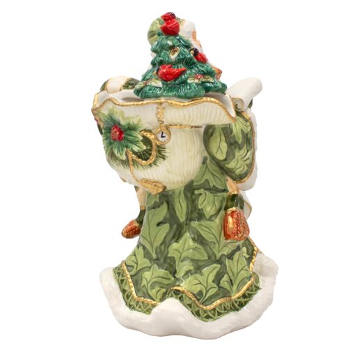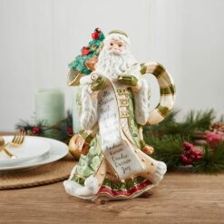 This Holiday Home Green Santa Pitcher features Santa Claus all ready to deliver his bagy of toys, yet taking a moment to check his list twice, and is showcased in a color palette of winter green with gold accents. A convenient handle and a pour spout is incorporated into Santa’s collar, and it will bring holiday cheer to all your seasonal celebrations. • Crafted of beautifully hand-painted Earthenware • Hand-wash only • Packaged in a gift box, perfect for gifting • Measures 7-1/2 inch diameter x 8-1/2 inch long with handle x 11-3/4 inch high • Holds 48 ounces
