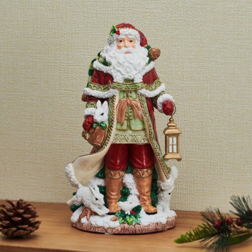 This Holiday Musical Telluride Santa Figurine will be an annual Christmas tradition in your home and also makes the perfect gift. Crafted of resin and beautifully hand-painted with attention to detail, this lovely musical figurine features Santa Claus bundled up for the winter weather in his classic red coat, carrying a lantern, and surrounded by cute bunnies. It will fill your home with the sounds of Christmas as it plays “Silent Night” while you open gifts or welcome guests. Wind up musical figurine has a convenient on/off switch on bottom. • Measures 11 inches high by 6-1/4 inches in diameter. • Crafted of Resin. • Simply dust gently with soft cloth. • Packaged in a decorative box, perfect for gifting.