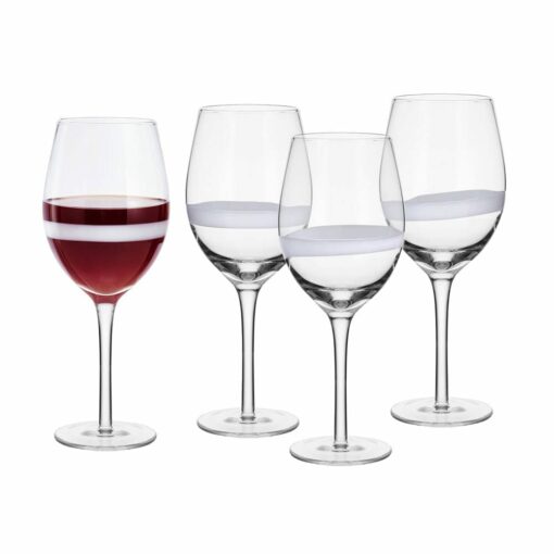 This Organic Band Red Wine Glass Set features a versatile design and understated details, with a solid-color band that will add a touch of style and complement any table. • Crafted of Hand-Blown Glass • Dishwasher safe • Measures 3-3/4 inch diameter x 9-1/2 inch high • Holds 20 ounces