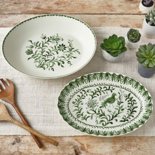 Sicily Green Serving Bowl and Platter Set